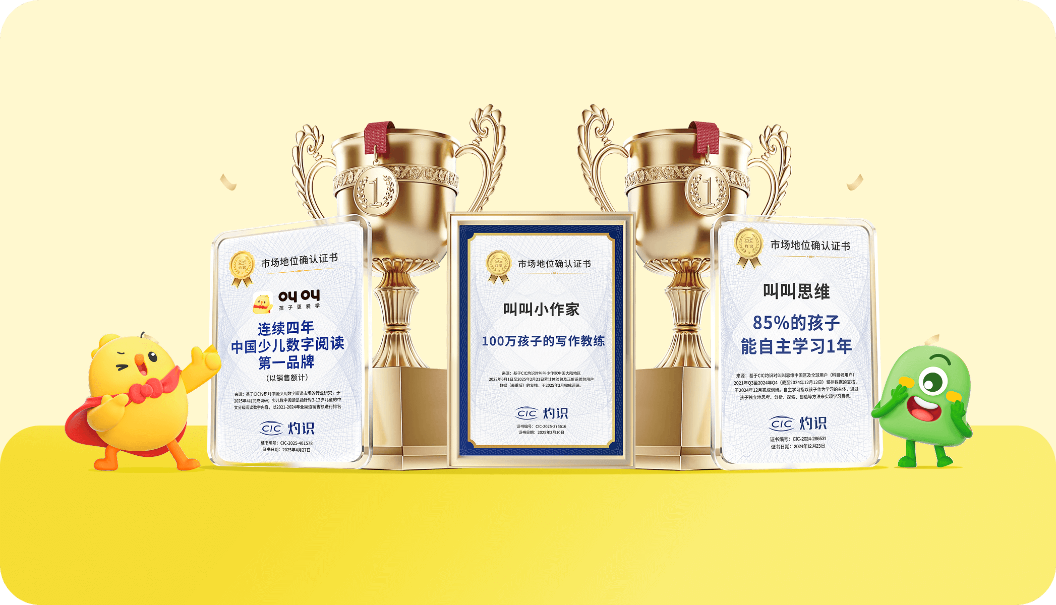 小作家获奖来源:基于CIC灼识对叫叫小作家中国大陆地区2022年6月1日至2025年2月21日累计体验包及正价系统包用户数据(去重后)的复核,于2025年3月完成调研。